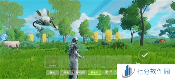 伴随着我们在星球上的登陆,根据任务指引我们可以在月兔处解锁建造机器人,通过指挥建筑机器人我们可以在地基上建造一系列的建筑包括牧场,厨房,仓库等等。