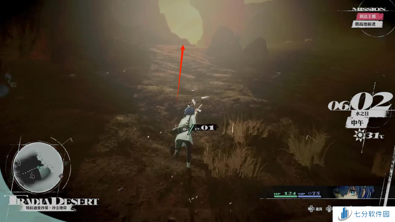 随后我们会看见一个上坡直接上去之后就可以进入城镇。