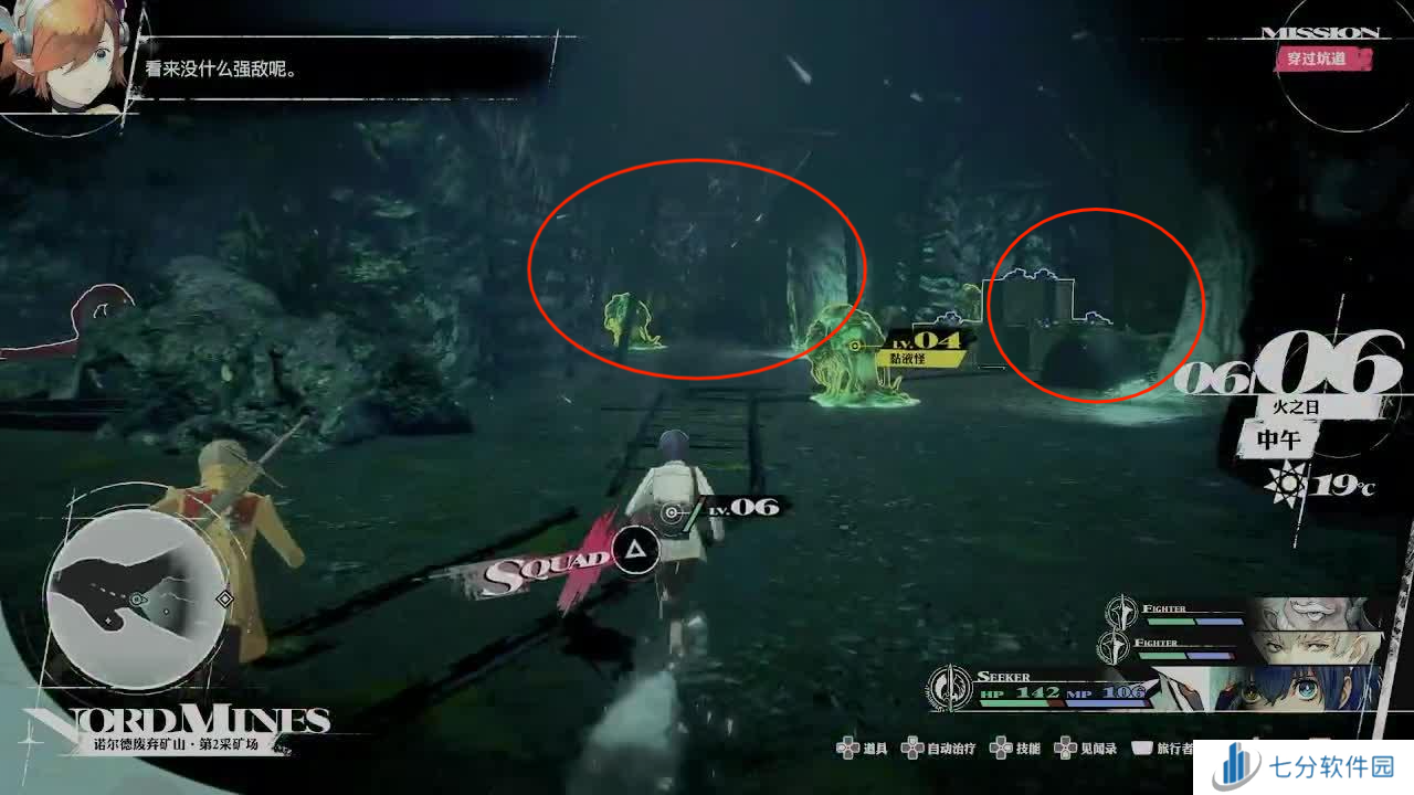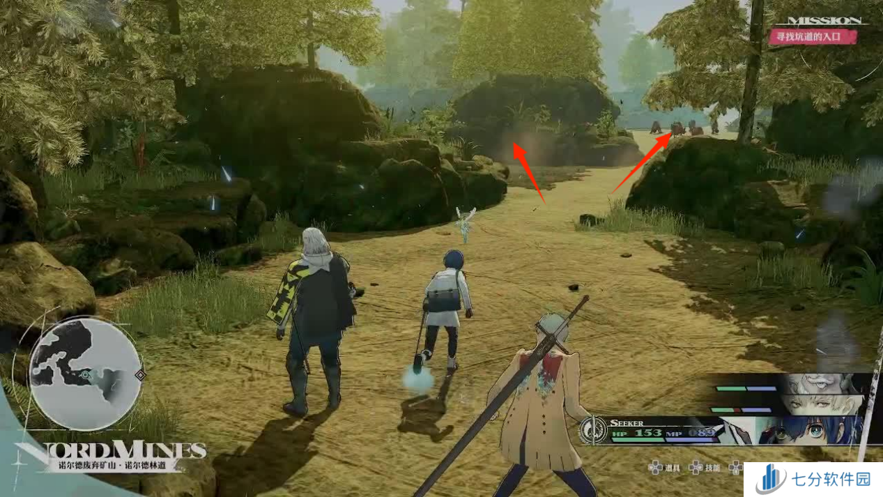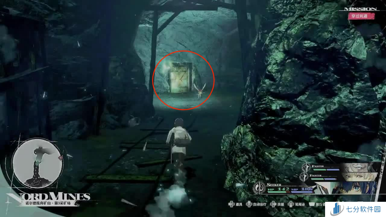 购买完补给之后继续往前,沿途都有道具可以捡,知道我们遇到了一堆士兵,打败士兵之后森林的迷宫便结束了,我们来到了新的迷宫矿洞门口。