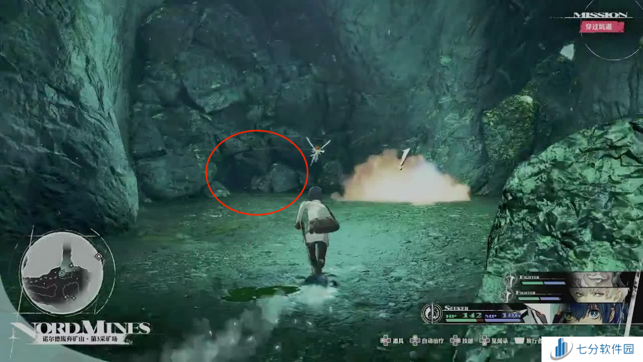 打开宝箱之后回到主路,往前钻过坍塌的洞穴