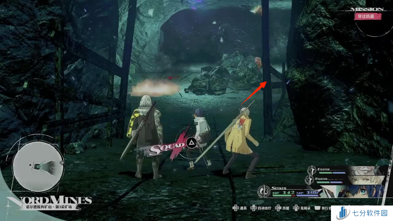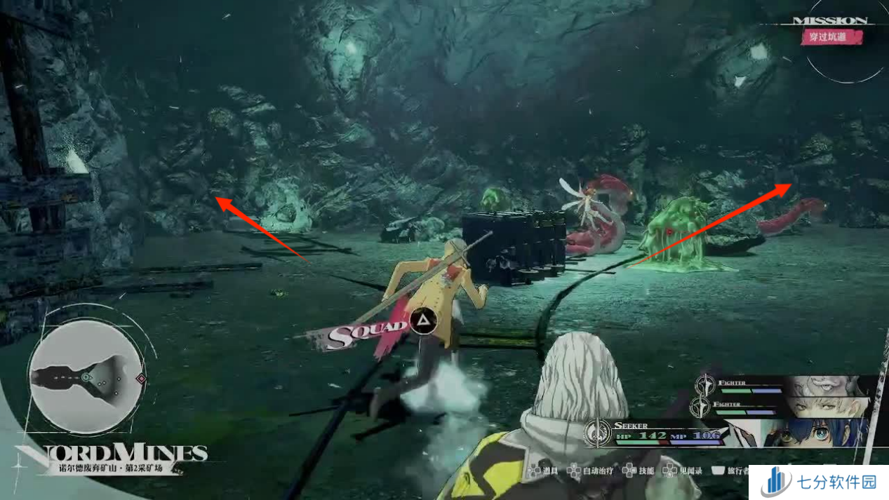 这里跟着右下角地图走右边可以获得道具,左边是一群小怪。