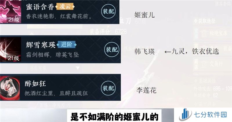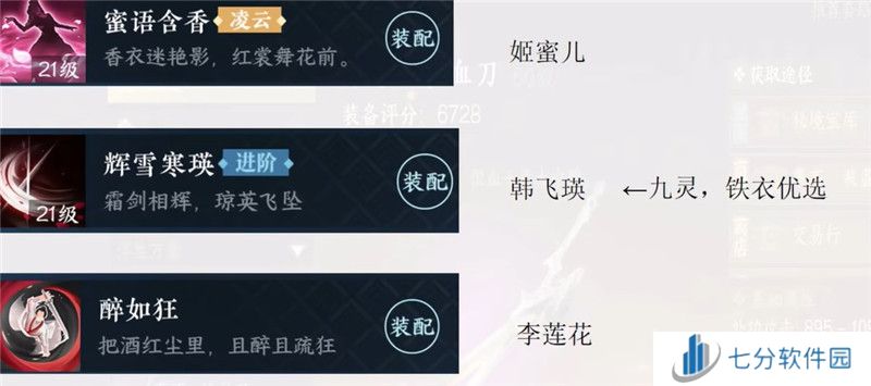 7、群侠选择,韩飞瑛因为其特殊的效果目前是一骑绝尘的,尤其是九灵和破T,因为韩飞瑛携带的流派资源回复效果增强,九灵和破T无脑将韩飞瑛抽到满阶;其他的流派大部分的流派都可以选择考虑将辉雪寒瑛抽到进阶,追求秒伤也可以,但是有一个例外就是萌新的龙吟如果是打一键连招的话辉雪寒瑛是很不舒服的会断剑荡八荒,那么醉如狂就是一个全新的选择。