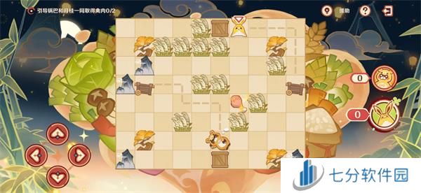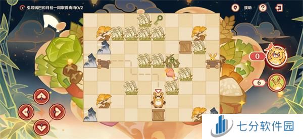 1.原神纸影寻肴第五关这边我们先操控锅巴推箱子吃到蓝钥匙。