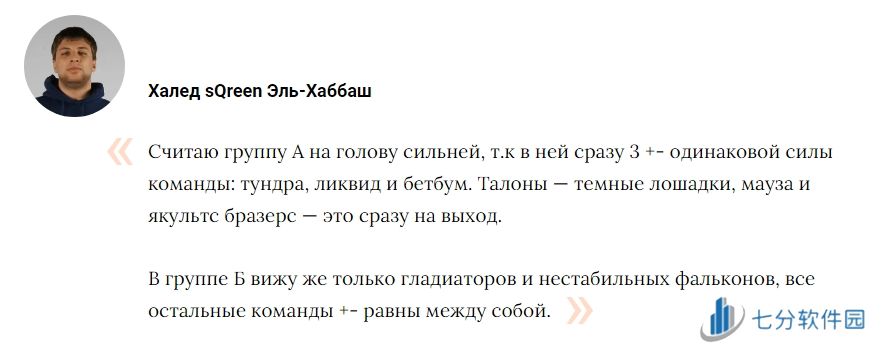 “我认为 A 组更强,因为它同时有 3 支实力强劲的战队:tundra、liquid 和 bb。Talons 是黑马,Mauza 和 Yakult Brothers 则会直接出局。在 B 组中,我只看到了 gladiators 和不稳定的 falcons,其他所有队伍的实力都不相上下。”
