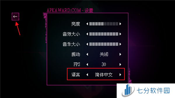 4、点击左边的箭头很快就可以换到简体中文,然后左上角返回;