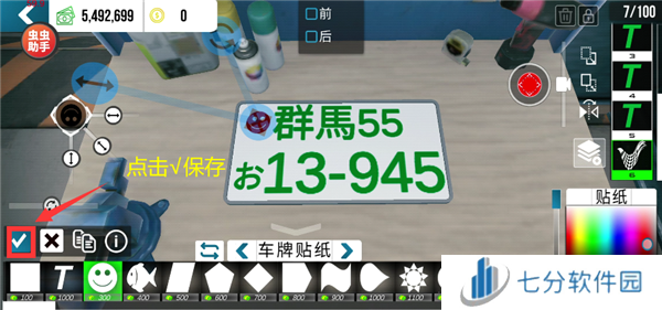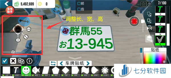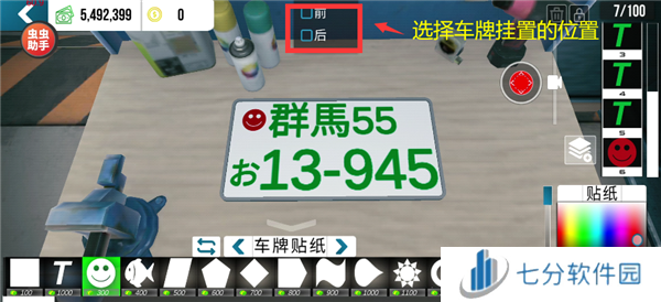 调整颜色与尺寸后,确定挂置位置(前/后车牌)。
