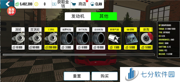 除了外观,我们还能对车辆的内部配件进行精细调整:
