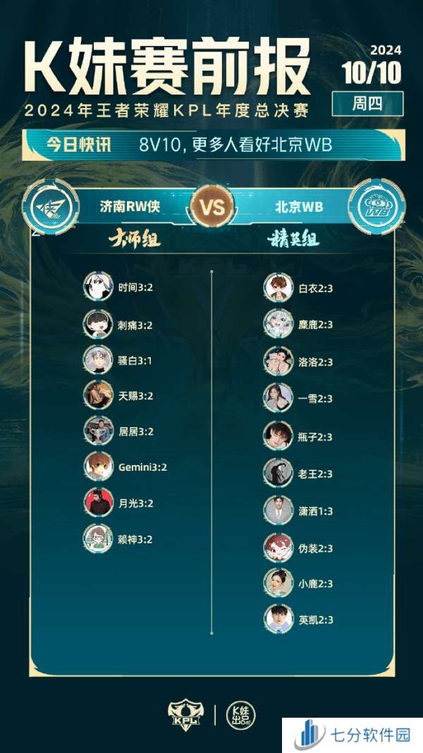 RW对战WB :8v10,更多人看好北京WB。