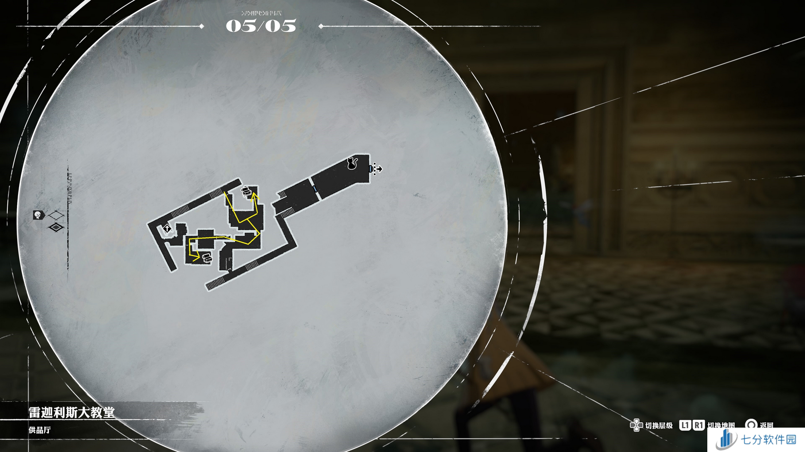 6月15日,探索地下纳骨堂,去雷迦利斯大教堂地图05/05,第二层,如图黄线找到两个宝箱。北部宝箱,里面是月影锤矛。