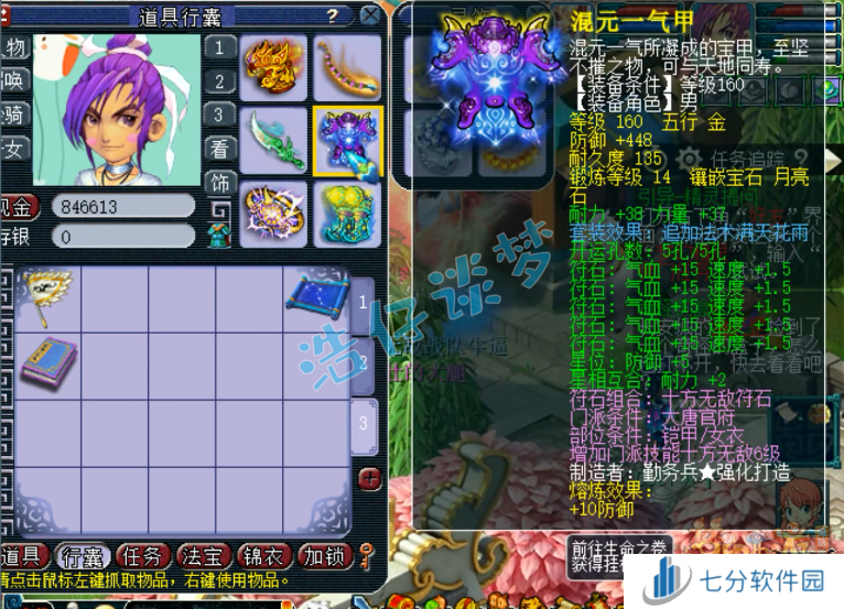 160级满天花雨套铠甲,力耐双加75,防御还可以熔炼得更高。