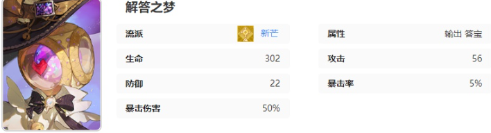 解答之梦在目标位置砸下一颗【骰子】造成64.0%×范围伤害。【骰子】会定期发射【答案光束】攻击周围敌人,造成96.0%伤害。解答之梦释放特性技能【万能回答】后,将强化下一次普攻。