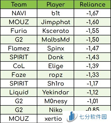 日前有CSer统计了当前各大战队当中哪位选手对队伍的发挥至关重要。从统计的结果看,有些出乎外界的预料。