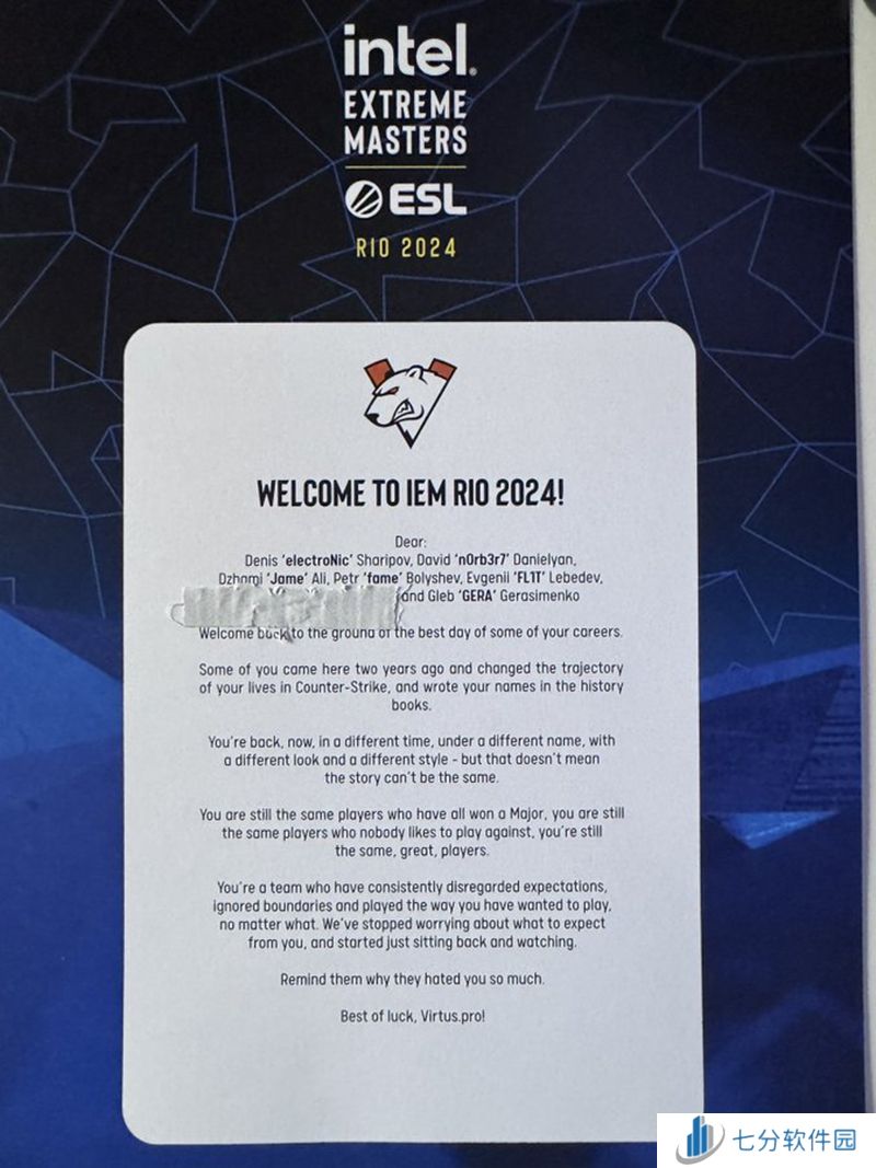 Virtus.pro来说,里约是一个充满美好回忆的地方。他们在此捧起了Major冠军奖杯,两年后VP再临里约,队员n0rb3r7也在社交平台上晒出了主办方的寄语。