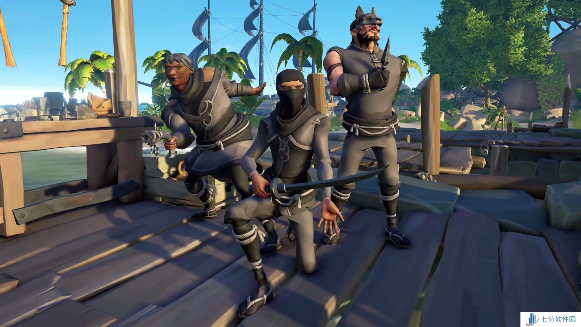 除此之外,还有一种新的多用途吹箭,可以把骷髅引诱到特定位置,触发令人迷惑的音效等等,还有在世界中放置弹簧陷阱的能力。不过,最令人兴奋的是,海盗们将能够使用新的抓钩枪工具在各处快速移动(或拉东西)。
