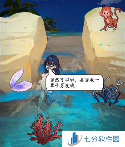 第8道门:右滑珊瑚,用【探照灯】开门,最后选择【当我女友】;
