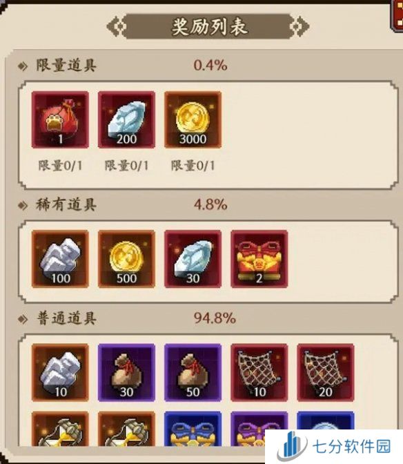 2、物品分析:限量道具中规中矩,20抽给的网和金币都十分到位。