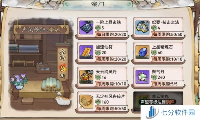 注意:限定款的青云剑丸(+5 资质 +5 暴击率)需要800声望值兑换,而且只能兑换2个