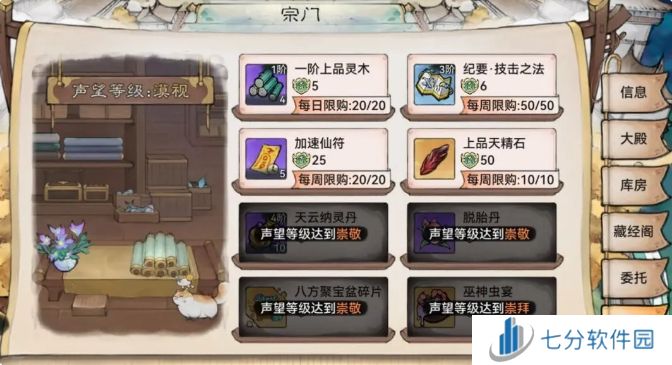 2、宗门商店
