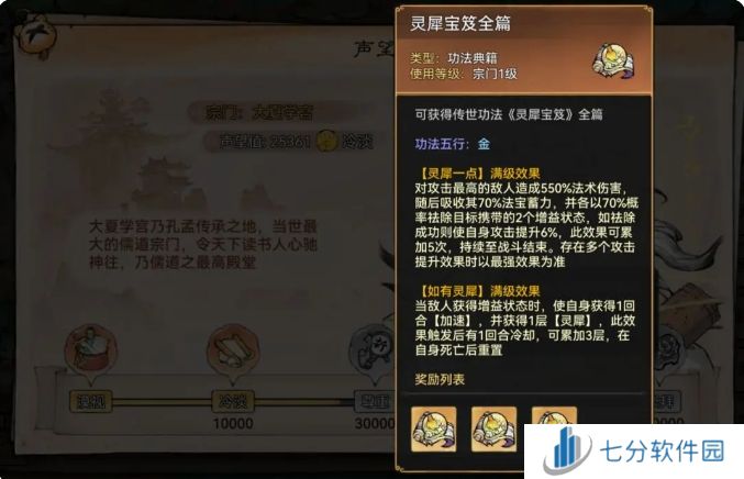 和大夏学宫差不多,有虚灵、大衍、魂归,因为有魂归所以给到3颗星吧。