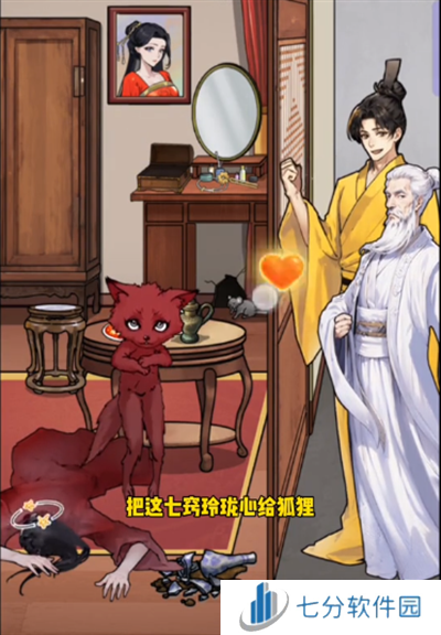 1、首先打开桌上盒子,把【七窍玲珑心】给狐狸;