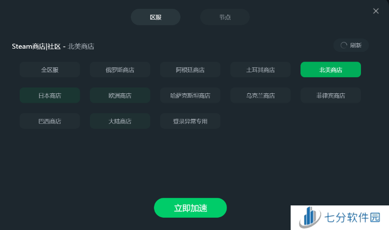 更改完之后重启电脑,重启之后不要打开其他应用,避免影响注册,直接打开迅游,然后开启steam商店的加速,区服要选择北美商店