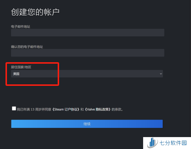 紧接着就是常规的注册流程了,打开steam,点击创建免费帐户