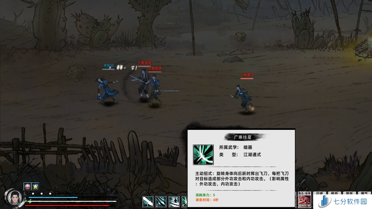 雨骤:消耗2真气,面向前方射出五段直线伤害。