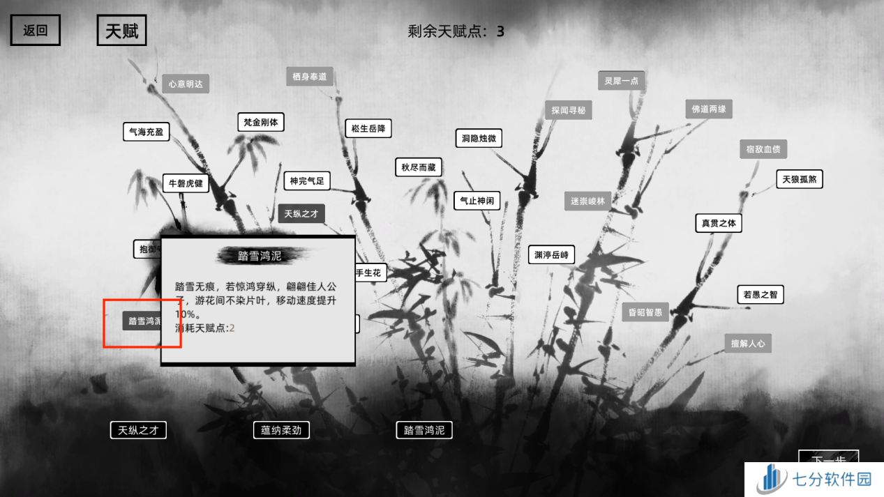 单独战斗的时候全属性增加30%,由于大部分的时候我们都是单打独斗,且同伴的攻击欲望并不高,所以也可以选择这个天赋,但是这个天赋和天纵奇才只能二选一,需要玩家自行斟酌。