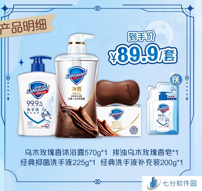 乌木玫瑰香沐浴露*1、乌木玫瑰香皂*1、经典抑菌洗手液*1、经典洗手液补充装*1