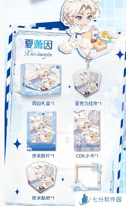 相应男主亚克力挂件、纸夹胶片、CDK小卡、防水贴纸等联动周边套组
