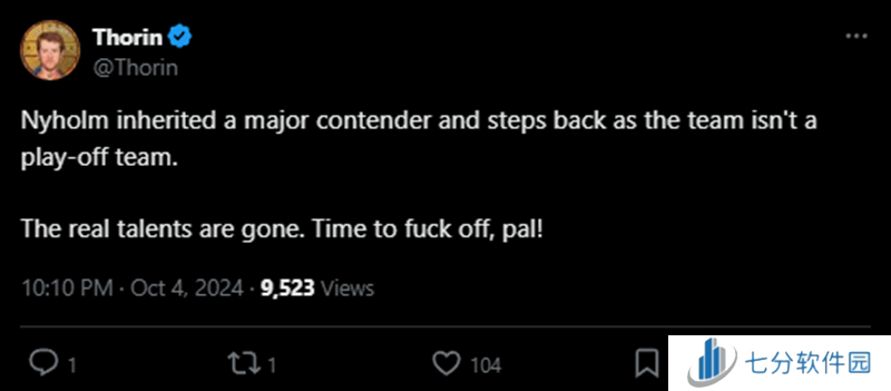 Thorin在社媒发表了自己对AstralisCEO辞职一事的看法。