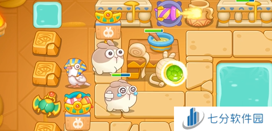 2、左侧的小乌龟在攻击怪物的同时还能攻击到范围内的障碍物。