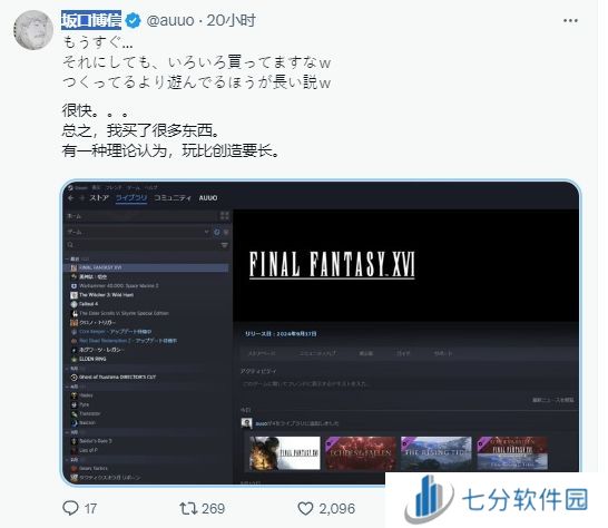 就在今天,《最终幻想16(FINAL FANTASY XVI)》的PC版于Steam平台正式开始发售了。这原本是在PS5上独占了一年的游戏,不过当前其热度并未减退,仍然有众多玩家选择购买并去体验。而“坂口博信”这位《最终幻想》之父也在第一时间购入了该游戏,将其放入了自己的Steam库存当中,还晒出了相关图片。