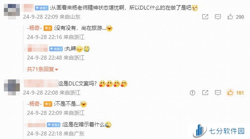 有人在评论区询问:“所以DLC什么的在做了吗?”,杨奇回复称:“没有没有,尚在旅游……”。还有人认为这是DLC文案?杨奇表示不是不是。