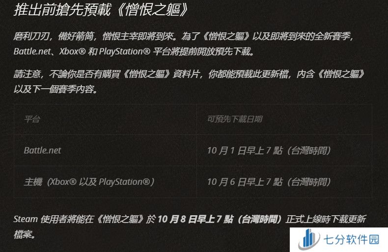 目前预购该DLC的玩家已经在暴雪战网预载《憎恨之躯》,Steam玩家需要等到10月8日正式发售时才能下载。