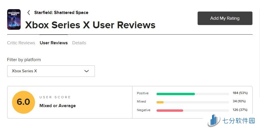 近日,《星空》DLC“破碎空间”现已正式推出,截至发稿前,该游戏在M站玩家(Xbox平台)评分为60分,差评率有37%。