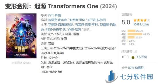 并且在豆瓣平台,该电影评分已经达到8.0分(开局时为7.9),且已有超过三万人为其评价。电影官方对此表示,这是变形金刚系列电影自近17年以来的最高得分。