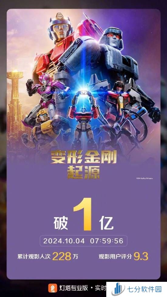 据悉,《变形金刚:起源》在中国内地票房已成功突破亿元大关,截止到上映第八天,有228万观众进行观影。据猫眼票房专业版数据显示,本部影片近日在全国市场上占据了第六名的位置,其中10月3日当日总票房达到了惊人的1024.23万元。