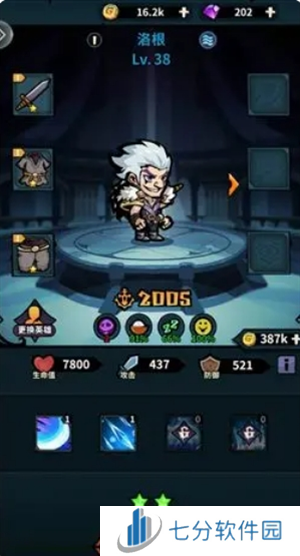 步骤1:点击英雄,查看各个英雄装备的情况,选择需要的装备。武器区分职业,战士用剑、法师用杖、弓箭手用弓,装备和首饰各个职业通用。看下图,我们看到【洛根】这个英雄只有出身自带的白板装备,所以我们选择给洛根做一把绿色武器。