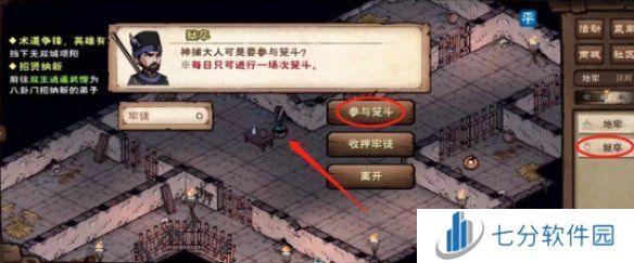 4、完成对话后前往地牢,并在与牢头的对话中选择第一个选项【参与笼斗】。