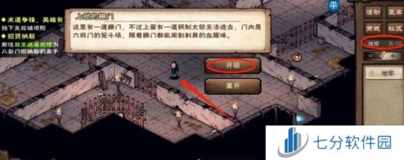 5、最后只需达到笼斗场门口就会自动触发剧情,之后点击第一个选项【开锁】即可成功进入笼斗场。