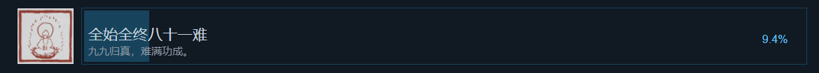 另一方面,达成全成就“全始全终八十一难”的玩家来到了9.4%。