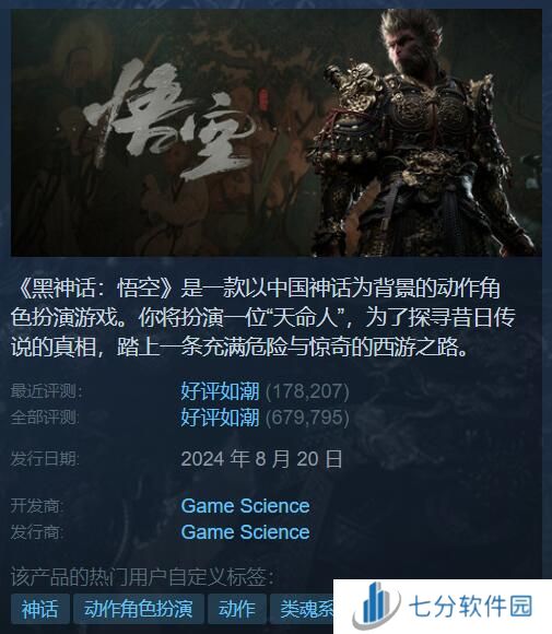 《黑神话:悟空》是一款以中国神话为背景的动作角色扮演游戏。你将扮演一位“天命人”,为了探寻昔日传说的真相,踏上一条充满危险与惊奇的西游之路。游戏目前在Steam上的总评价为“好评如潮”,喜欢的同学可以来一发。