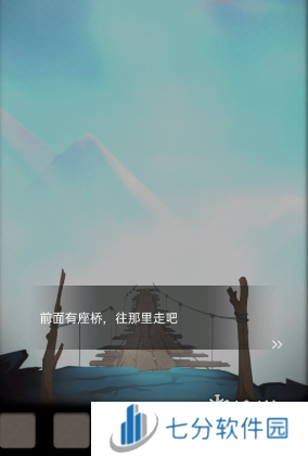 1、点击桥,再点击点击地上的木棍,进入右侧场景,将木棍放到树脂上。