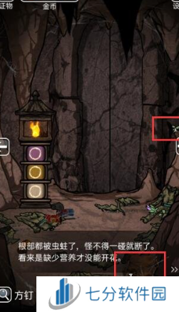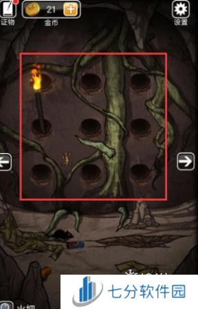 11、在9个洞的房间中使用青铜刀砍断树上的树枝,将折断的花和青藤放上去。