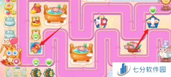 6、道具全清后根据图中位置摆放炮台,但是第四波在右下角出现了一个浮台。