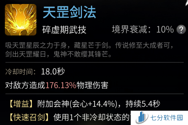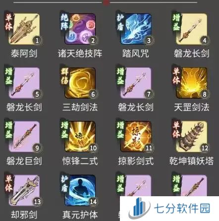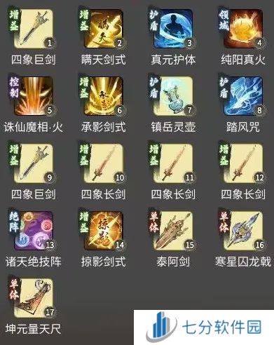 ●神通:可选择性很多,常见的“蓄势—控制—快速召剑—爆发”,或者“通用神通控制—快速召剑—耗剑控制—快速召剑—爆发”,这两种都可以打出比较好的效果。