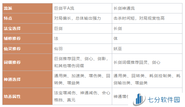 该流派可细分为以下两种,法宝主要选择伤害较高的巨剑: