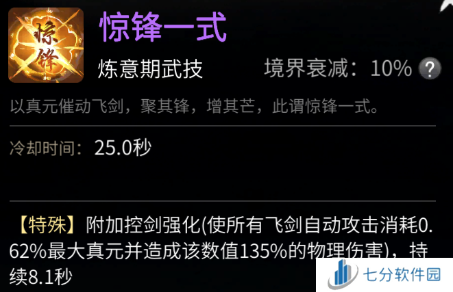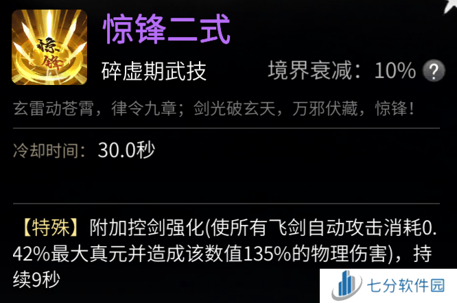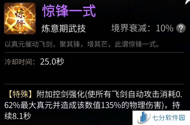对于真元较多的仙友(剑法),它可以提供一个相对高的输出效果,但缺陷就在于蓝耗较高,且护盾的承伤也耗蓝,如果在惊锋期间没有击败对手,后续的蓝量就会相对短缺。