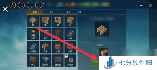 接着在建造材料中,选择【筏】。